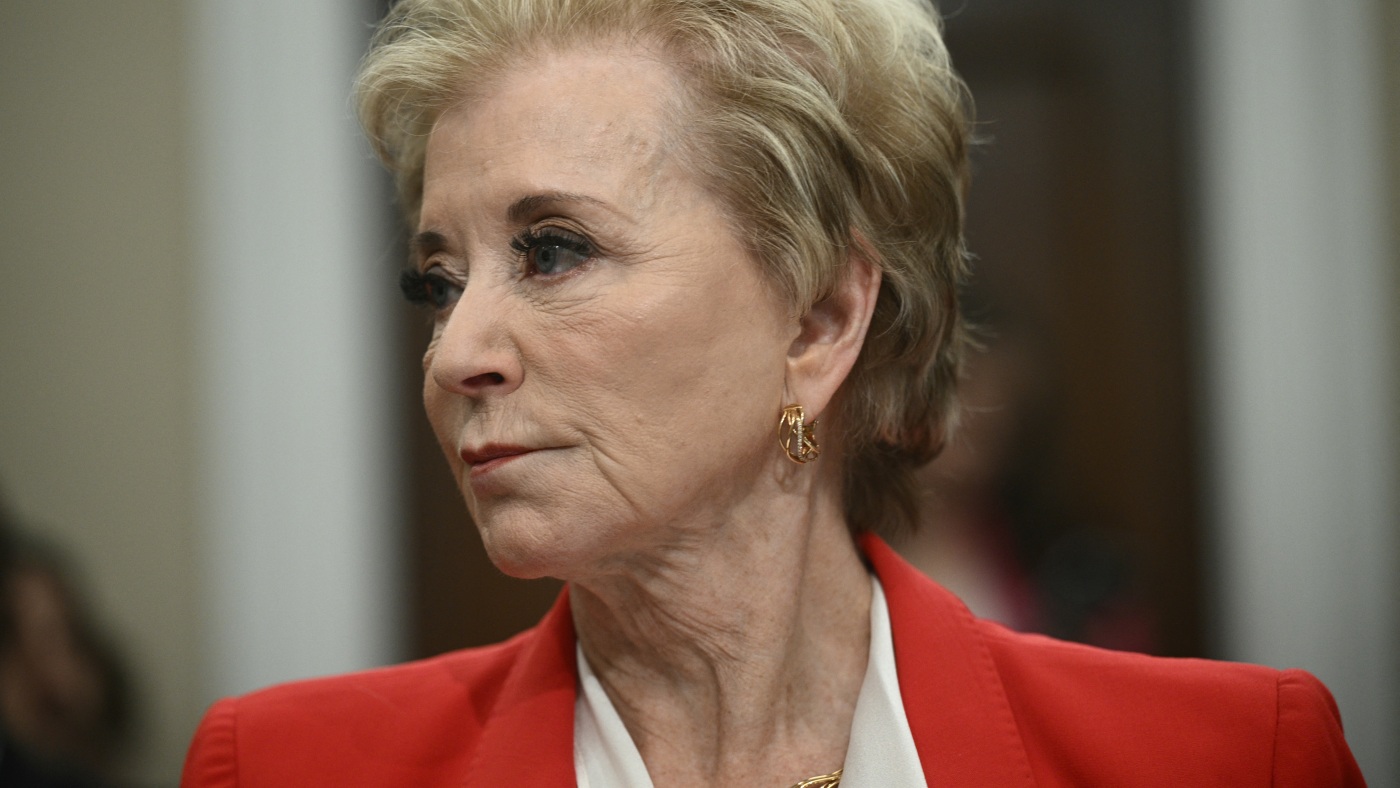 Secretary of Education Linda McMahon testifies at the Capitol in Washington, DC, May 21. The Trump administration wants schools to sign a “pact” in exchange for priority access to federal grants.