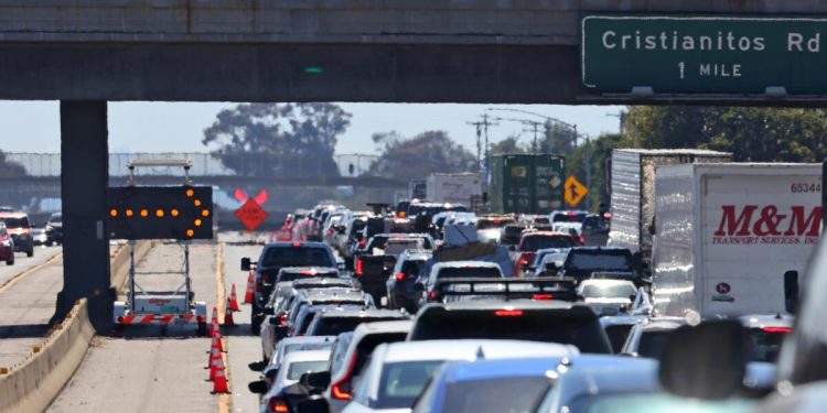 Mid-morning Saturday, the southbound 5 stopped about a half-mile from the El Camino Real exit, the penultimate exit before closing.