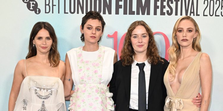 The Canadian filmmaker was joined by Emma Corrin, Maika Monroe, Amir El-Masry, Richard E. Grant and Felicity Jones at the city’s Royal Festival Hall on Sunday evening to conclude an almighty series of premieres for the LFF. Lead actors Nicholas Galitzine and Charli XCX were not in attendance.