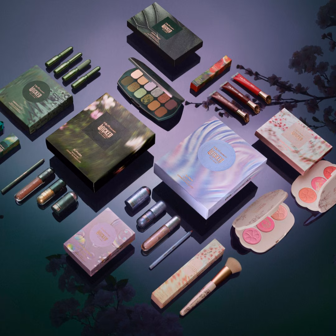 The collection’s formulations and shades were inspired by Glinda, Elphaba and the rest of the magical world of Oz. It includes everything from plumping glosses and pink blush trios to sets featuring some of the brand’s best-sellers with exclusive shades and metallic eyeliners.