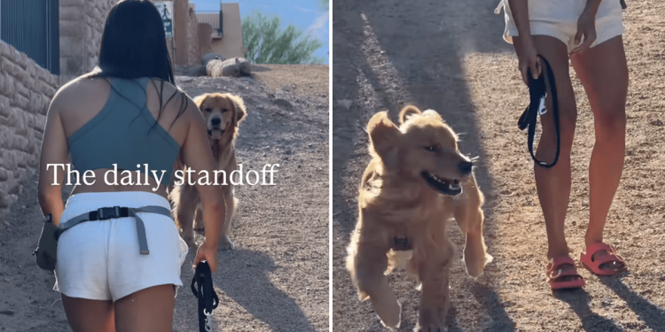 Anyone who has ever tried walking their dog knows that it’s not always as simple as attaching a leash and heading out the door. Some puppies practically jump with excitement as soon as they see their leash, while others turn the experience into a playful battle of wills. For a dog owner and her mischievous Golden Retriever, Bear, this playful confrontation has become a daily ritual, and a hilarious video of it is making everyone online smile.