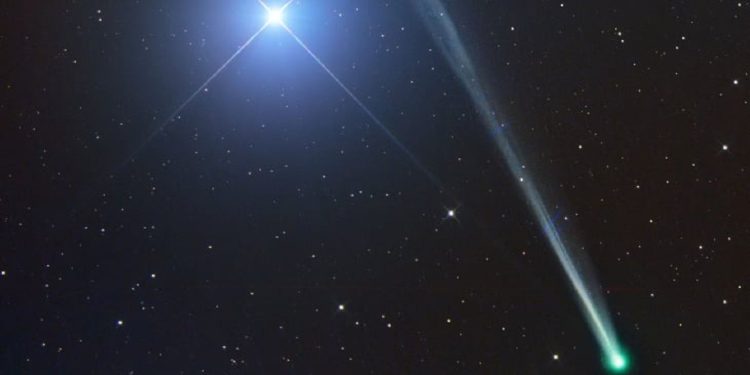 As it gets closer to the sun, the heat from our star causes the frozen material in the comet’s core to change from a solid state directly to a gaseous state, in a process called sublimation. The resulting gaseous shell is then blown away by the solar wind, creating a long tail of dust and gas that reflects sunlight, creating a cosmic spectacle that might, if we’re lucky, be visible to the naked eye from Earth.