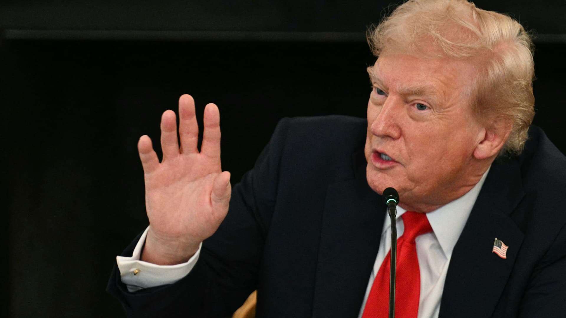 U.S. President Donald Trump speaks during a panel discussion on “Antifa,” an anti-fascist movement he has called a domestic “terrorist organization,” in the State Dining Room of the White House in Washington, DC, October 8, 2025.