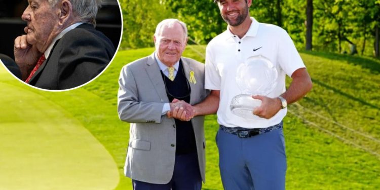Jack Nicklaus (left) poses with Scottie Scheffler (right) after Scheffler’s victory at the Memorial on June 1, 2025. Sportswire Icon via Getty Images