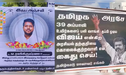 Meanwhile, posters showing Vijay’s hands drenched in blood and condemning TVK were seen on the streets of Karur.