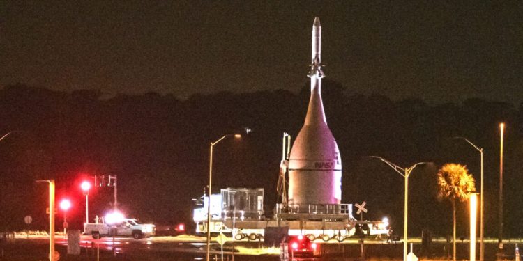 Kennedy teams also installed four pointed panels to serve as an aerodynamic shield on top of the Orion crew capsule during the first minutes of the launch.