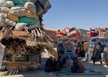 Afghan refugees sit next to their belongings loaded into vehicles while waiting for the opening of the border crossing point, ...
