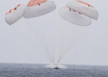 Two NASA astronauts, a Japanese aviator and a Russian cosmonaut returned to Earth Saturday, safely docking in the Pacific Ocean ...