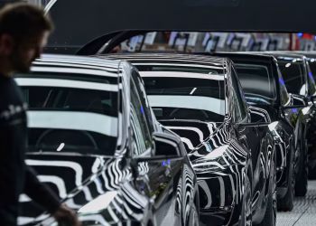 Article 1 of 2 Model cars are represented during the opening ceremony of the new Tesla Gigafactory for electric cars ...
