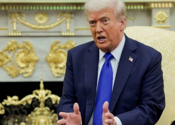 U.S. President Donald Trump speaks as he and Prime Minister of Canada Mark Carney (not pictured) meet in the Oval ...