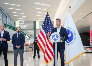 Transportation Secretary Sean Duffy speaks during a news conference at Newark Liberty International Airport in New Jersey on Monday. Michael ...