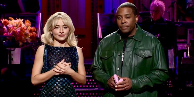 The monologue followed an opening Domingo skit in which Carpenter was one of several women at a birthday party describing a bachelorette-style trip to Nashville while singing parody versions of Taylor Swift’s “The Fate of Ophelia” and Lady Gaga’s “Abracadabra.”