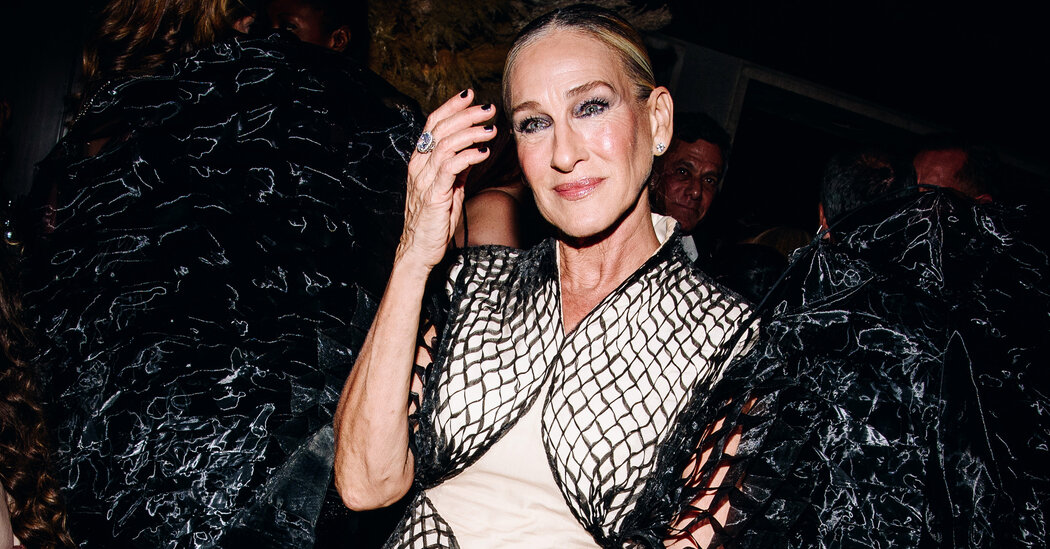 “They don’t come off!” Ms. Parker, wearing a black and beige dress by Ms. van Herpen, said during dinner. “But I sat next to my husband, so he was forgiving. And they came down, so I didn’t block anyone’s view.”