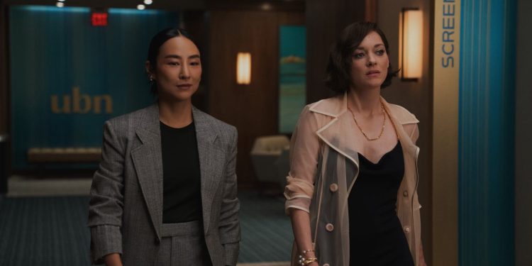 Greta Lee here as Stella Bak when the UBN CEO accidentally exposes her biggest secret (an affair with her boss’s husband) during a presentation on AI.