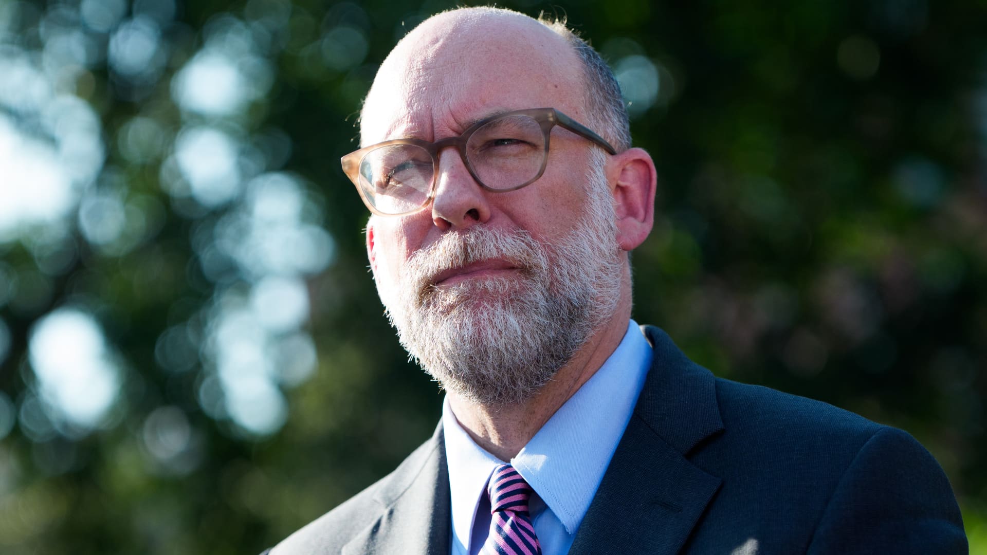 Russell Vought, Director of the Office of Management and Budget (OMB), speaks to the media outside the White House in Washington, DC, U.S., Thursday, July 24, 2025.