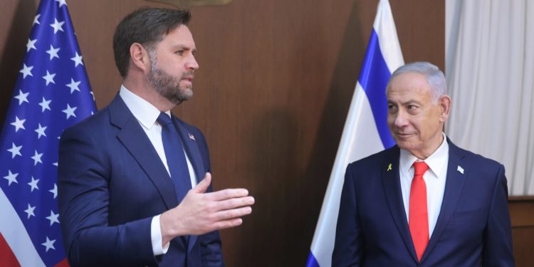 Vice President Vance meets with Israeli Prime Minister Benjamin Netanyahu in Jerusalem on Wednesday. Vance is among several high-level U.S. officials in Israel who support the ceasefire between Israel and Hamas.